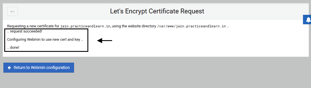 Now that you have a proper virtual host and DNS configured for your hostname, you can request the Webmin SSL certificate.