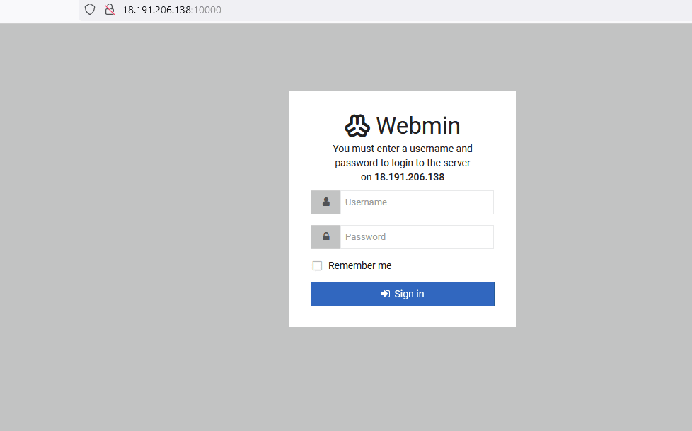 To access the control panel, type the Webmin panel URL in the web browser. Replace server-ip with your server’s IP address.